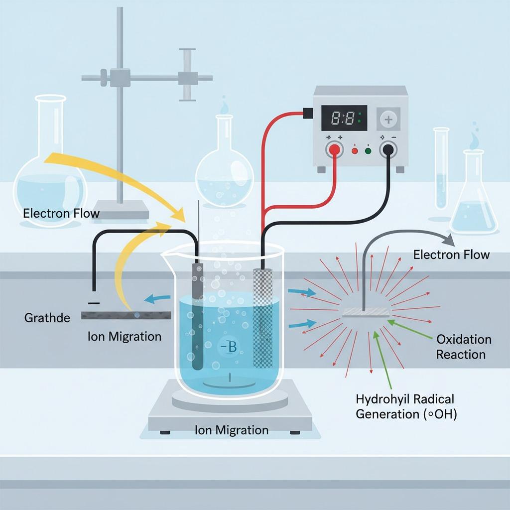 The process is governed by Faraday’s laws of electrolysis, where the mass of substance altered is proportional to the quantity of electricity passed: m = (Q / F) × (M / n), with Q as charge, F as Faraday’s constant (96,485 C/mol), M as molar mass, and n as electrons transferred. In practice, electro oxidation systems employ dimensionally stable anodes (DSAs), such as those coated with mixed metal oxides (e.g., RuO₂-IrO₂), to minimize overpotential and ensure longevity. These setups are optimized for pH ranges from acidic to alkaline, depending on the target application, with current densities typically ranging from 10 to 100 mA/cm² to balance kinetics and energy efficiency.